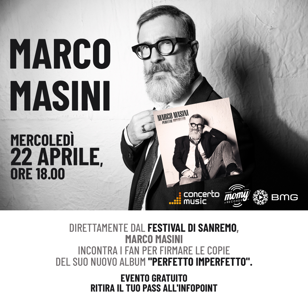 Mercoledì 22 aprile Ore 18:00 Vieni ad incontrarlo dal vivo per il firmacopie del suo nuovo album Perfetto Imperfetto Evento gratuito Ritira il tuo pass